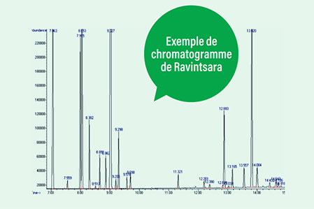 Le chémotype d’une HE permet d’en définir ou d’en limiter certains impacts. Pour cela, le profil chromatographique, à partir duquel est défini le chémotype, doit être étudié en entier. Il convient de l’examiner pour y détecter l’histoire du végétal, ses conditions de croissance et de récolte, celles de son obtention et même d’y déceler les artefacts générés par la distillation.